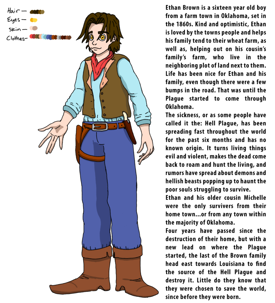 Welcome! My name is Ethan Bloom and I am a digital media student at Danforth Francis Tuttle learning about graphic design. I specialize in character and creature design, you can check out a few examples I posted down below!