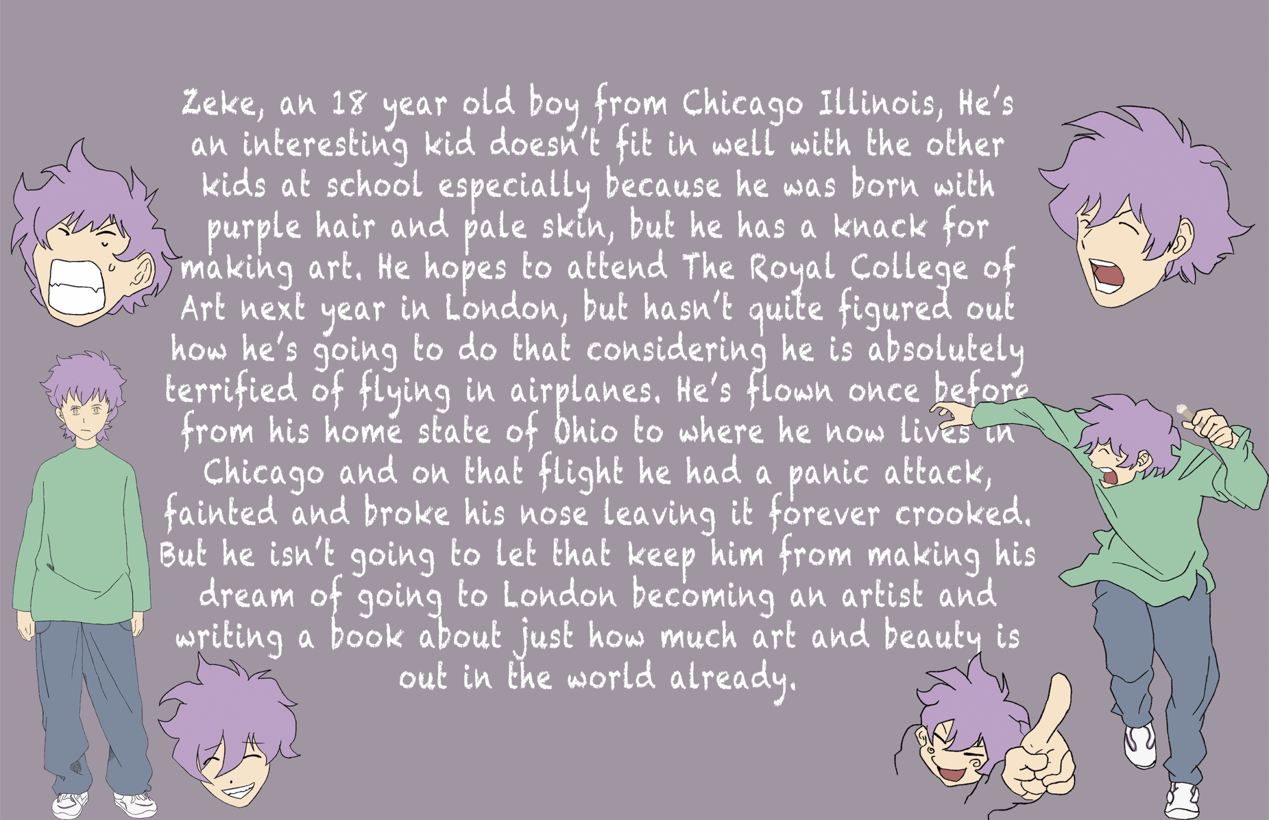 This character turnaround took me about 4 days of working in class, I feel like I struggled with putting everything together for my portfolio the most but eventually got it through trial and error and some youtube videos. I got to use not only drawing skills but photoshop skills too to make the whole process a lot easier. If this were a team project I believe I would have been the designer role in this particular project.