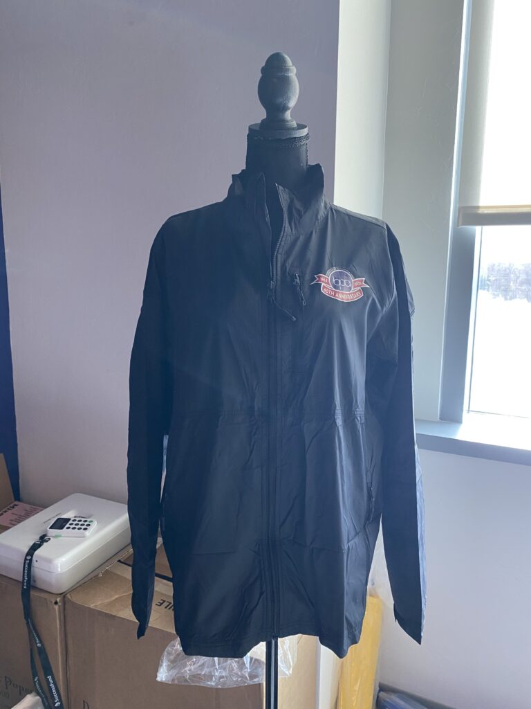 For competition, I wanted to make a real version of my mockups. Not just for myself and my presentations sake, but also to show the judges how it would look in person since it might’ve been difficult to go off of photos alone. I ended up picking a cheap windbreaker and a multipack of black stressballs from Amazon so I could take it to the PRL and make the design a reality.