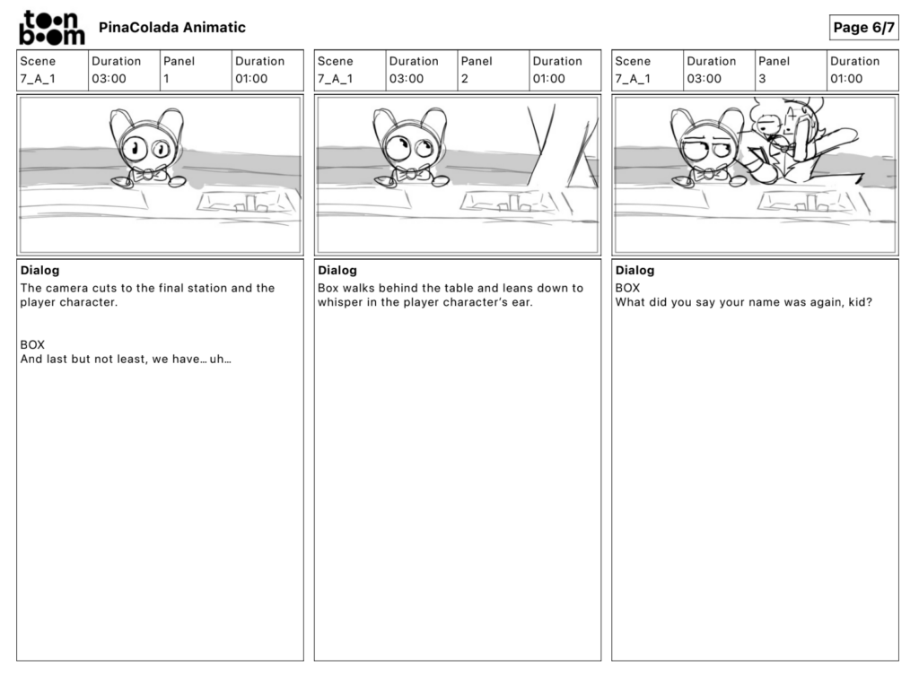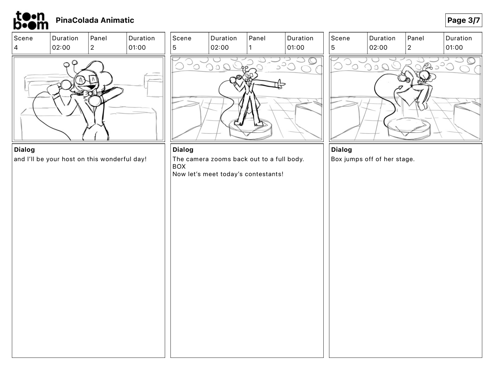Next, I started creating the storyboards. I made sure to keep the motion noticeable within the storyboards so I wasn’t confused later on. I then moved on to finding some audio for my animatic. I created the music for the animation, as well as Box Serial’s voice. all of the other sound effects came from Pixabay. I then put all of the audio and storyboard panels together into an animatic. a trouble I had with the animatic was that the time stamp covered the text boxes. I then sent the animatic to my C.R.E.W team for review, and moved on to create the actual animation itself.
