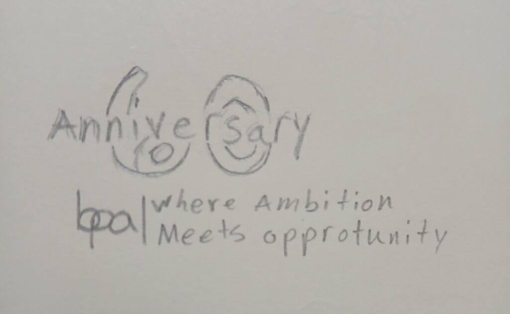 I sketched a variety of logo ideas, experimenting with shapes, symbols, and layout styles until I found the ones that best represented BPA and the 60th Anniversary theme.