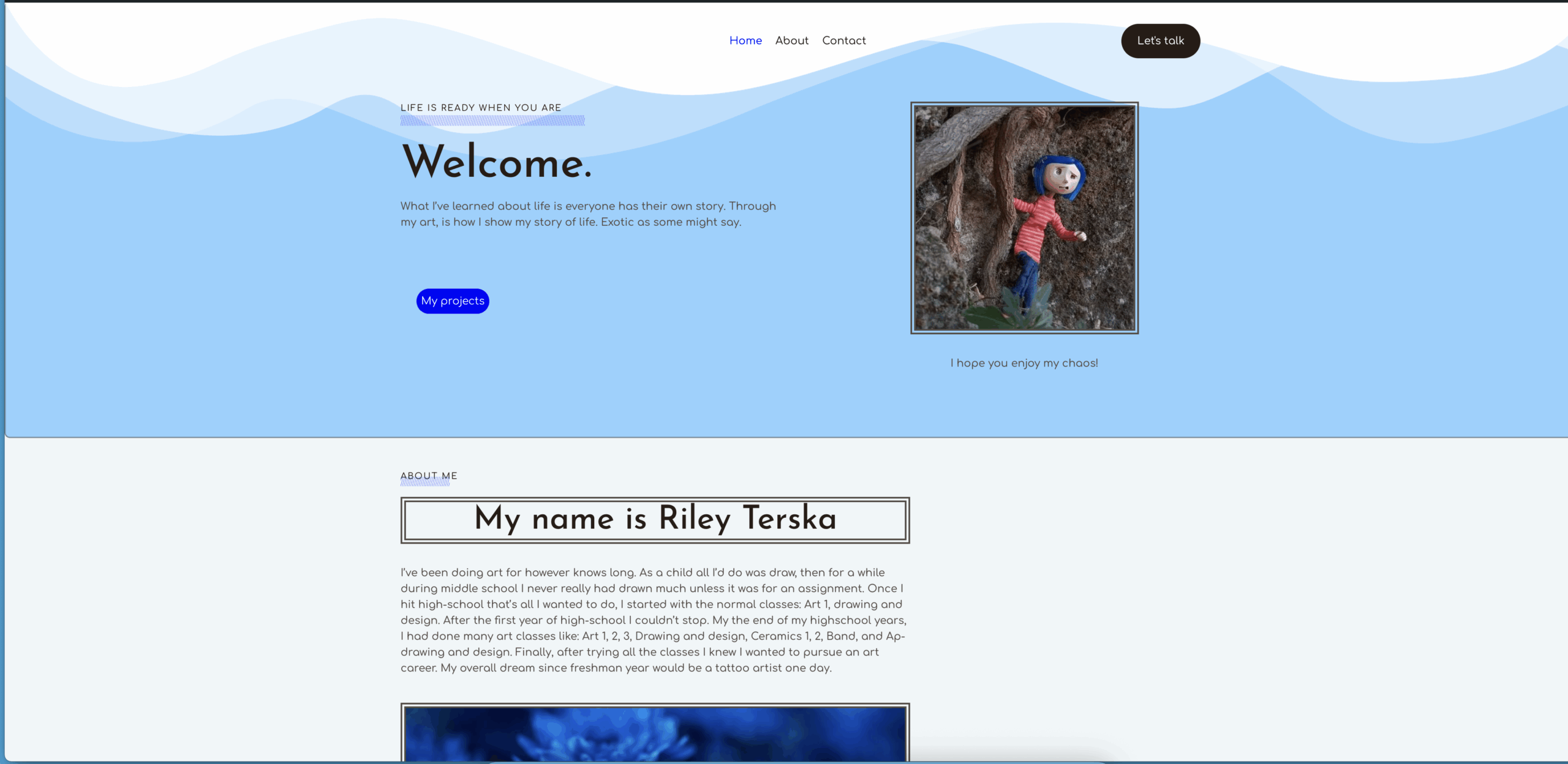 The first thing in this class was to make a website. In this website we are to put all our works into this, as a portfolio. This was exciting for me because I love to explore new medias in art, and I have not done anything digital like this before so it shows more learning on my part.