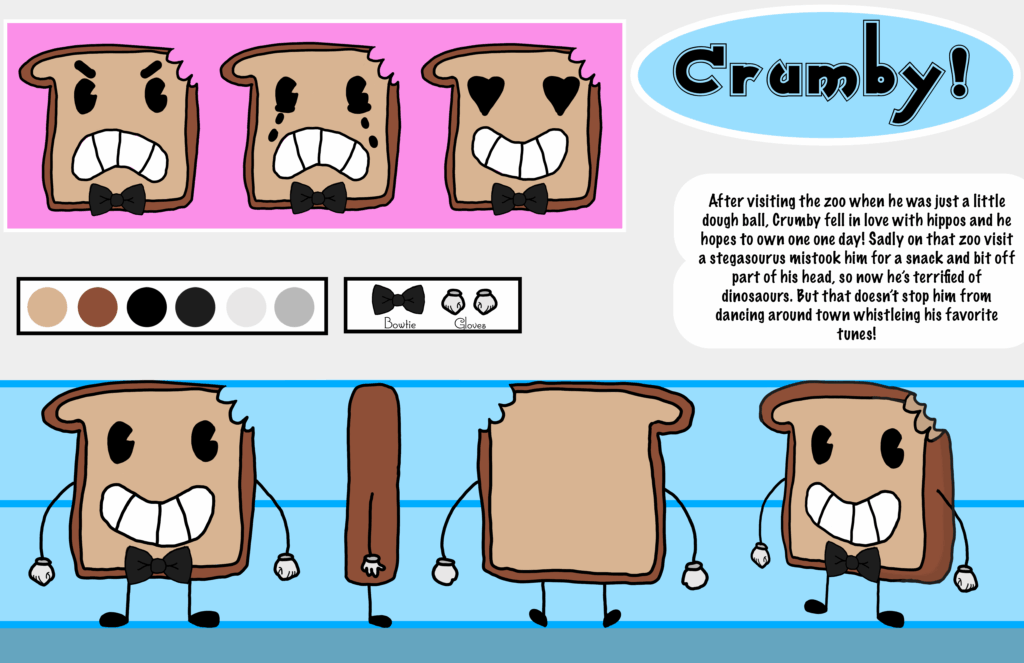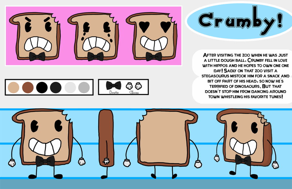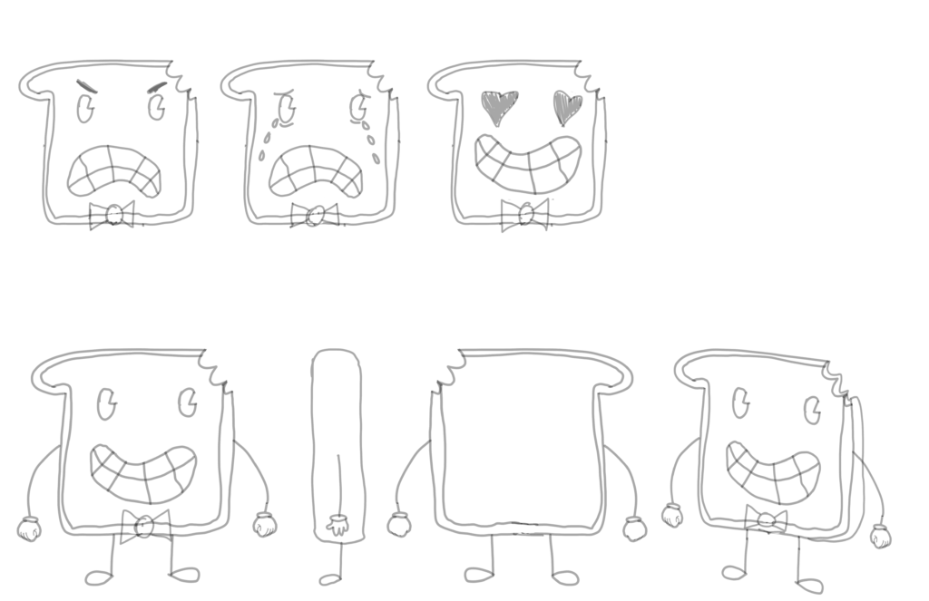 I was given 30 hours to make a character turnaround based off of one of the prompts given to me. I decided to choose the one about a piece of toast.